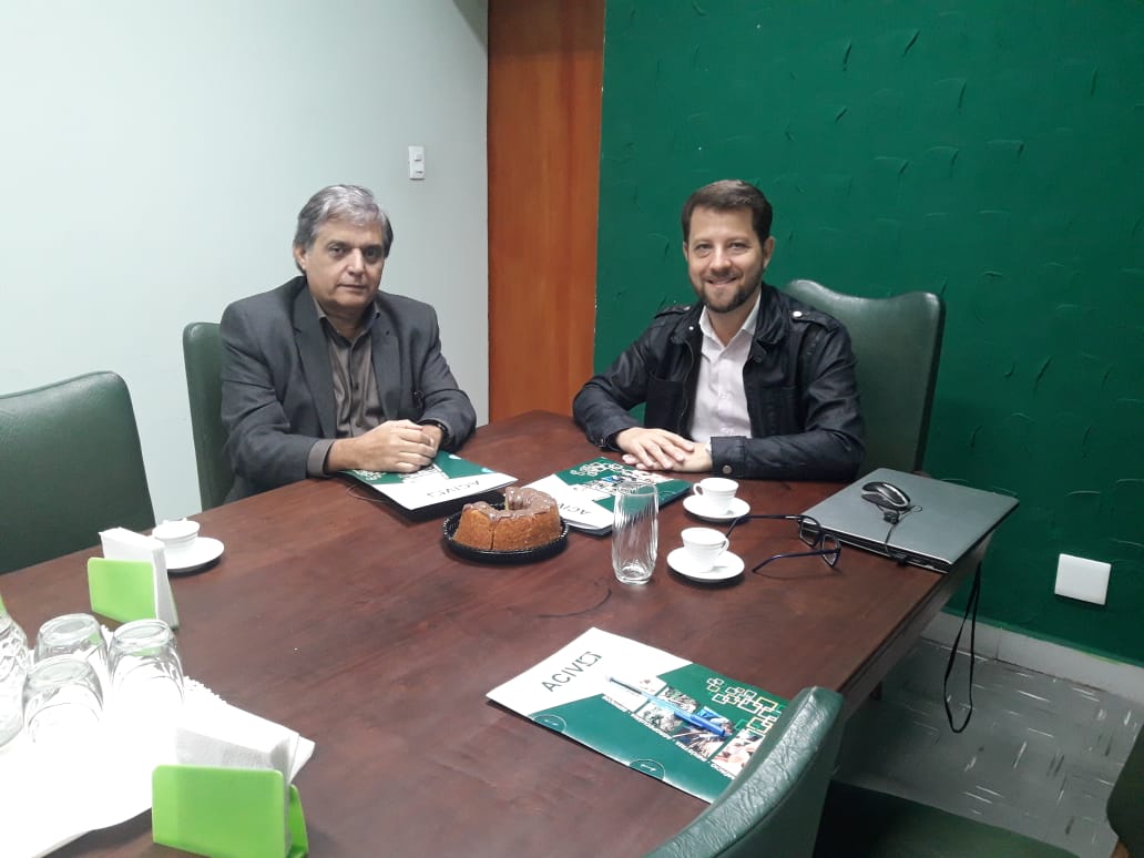 O presidente da ACIV, Anderson de Souza Martins, a gerente executiva da ACIV, Kátia Gozales e o presidente da MINASUL, José Marcos Magalhães, se reuniram na Associação Comercial, Industrial, Agropecuária e Serviços de Varginha, para fazerem um balanço final do Café com Tudo 2019.