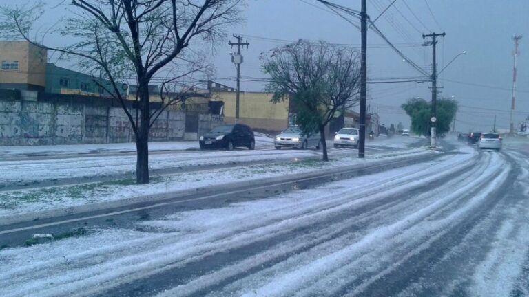 Chuva de granizo cobre ruas de branco em Franca (SP) e em Altinópolis (SP)