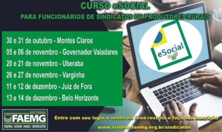 Confira a agenda de cursos do Senar MG – 10/12 a 16/12/2018 (Regional Lavras)