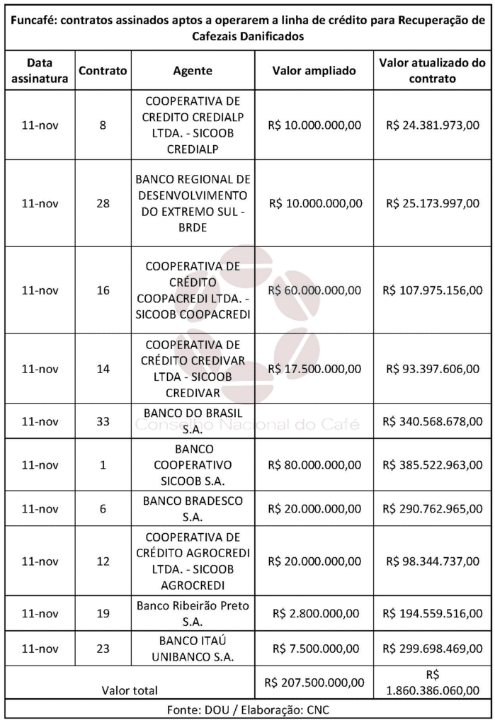 Funcafé: DOU publica contratos com dez agentes financeiros que vão operar linha de recuperação de cafezais danificados