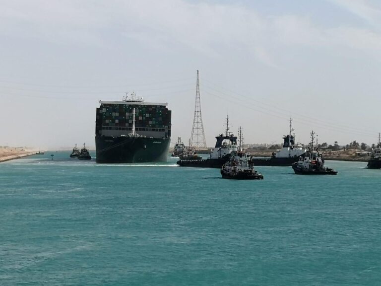 Navio gigante é desencalhado após seis dias de bloqueio no Canal de Suez