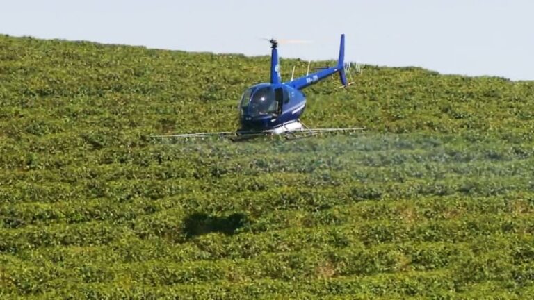 Cafeicultores se reúnem em Três Corações para ver sistema de pulverização por helicóptero