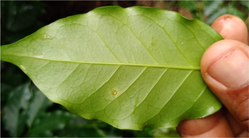 Outro exemplo de problema combatido pelo casal com preparos homeopáticos foi o aparecimento da chamada ferrugem do cafeeiro. Provocada por um fungo, a doença provoca manchas nas folhas de uma coloração que vai do amarelo escuro a marrom, causando a desfolha da planta. Com a aplicação de Arnica Montana 6CH, a ferrugem foi aniquilada. ” Agora você vê a pintinha da folha, vira para o outro lado e ela está toda apagada. A homeopatia fez com que a planta reagisse contra a cercoesporiose. O café está uma maravilha”, explicou o extensionista Enes Pereira.