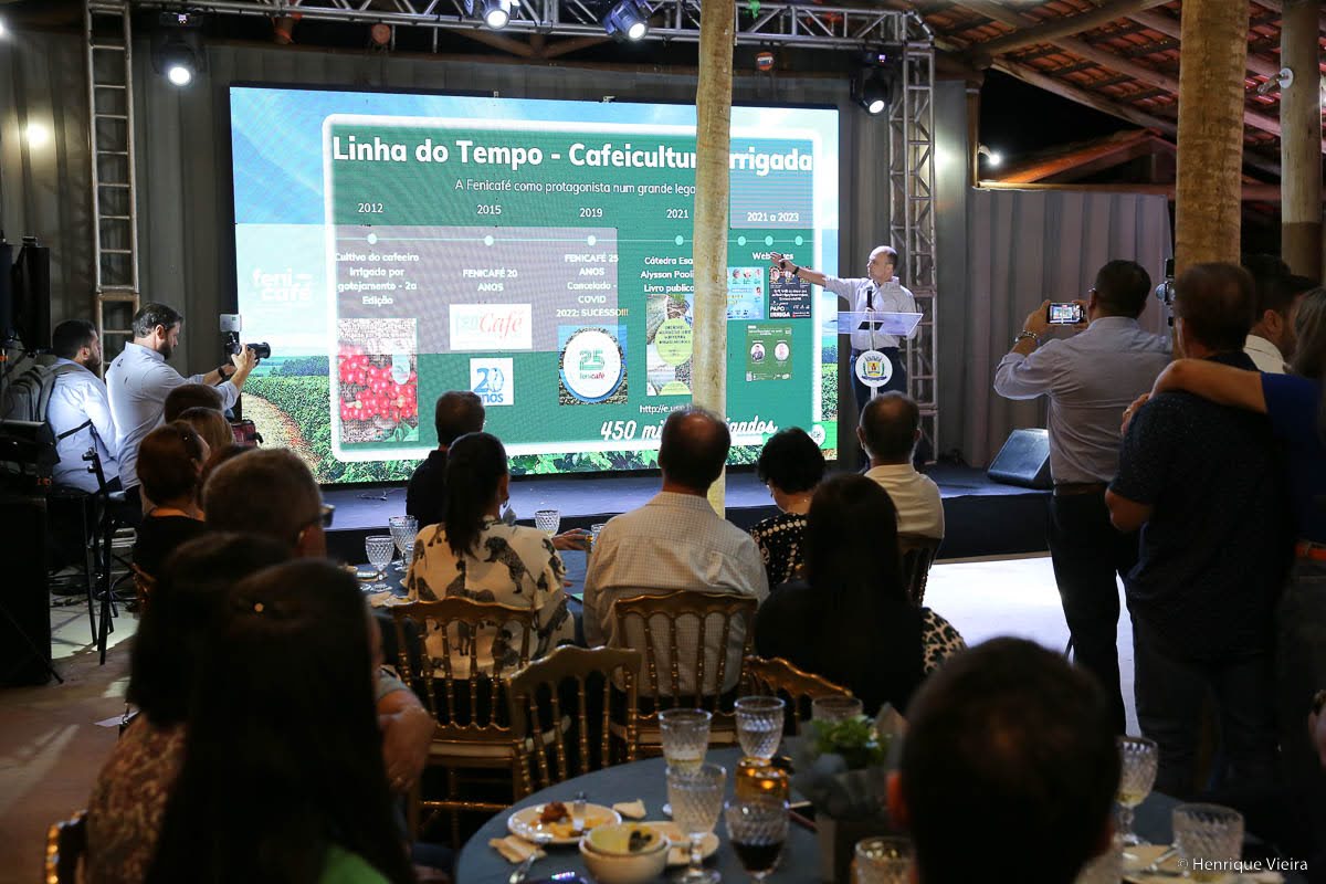 Considerada a maior feira da cafeicultura irrigada em café no Brasil e uma das principais difusoras de tecnologias no segmento, a Fenicafé – Feira Nacional da Cafeicultura Irrigada. Assim como em 2022, a Fenicafé faz parte da Café Agro – uma semana de eventos que se encerra com a ExpoAraguari. O lançamento oficial aconteceu na noite desta quarta-feira (01) no Parque de Exposições Ministro Rondon Pacheco, em Araguari, no Triângulo Mineiro, no mesmo local onde será realizado de 28 março a 02 de abril. Autoridades políticas, líderes e a sociedade civil estiveram presentes.