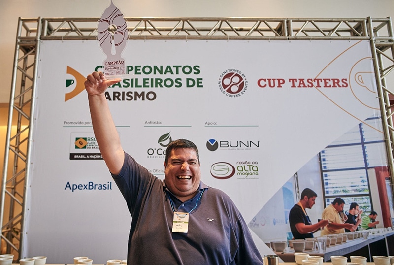 Em meio a 48 participantes, que colocaram sua experiência na distinção de cafés à prova nos dias 2 e 3 de maio, o degustador da empresa Ouro Verde Cafés Especiais, André Aguila, de Ibiraci (MG), sagrou-se vencedor do Campeonato Brasileiro de Cup Tasters 2019. A competição, que integra as ações do projeto setorial “Brazil. The Coffee Nation”, desenvolvido pela Associação Brasileira de Cafés Especiais (BSCA) em parceria com a Agência Brasileira de Promoção de Exportações e Investimentos (Apex-Brasil), foi realizada na O’Coffee, em Pedregulho (SP), e teve a Revista Espresso como mídia oficial.