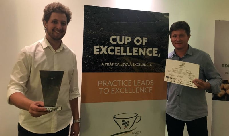 O café especial produzido pelo produtor Gabriel Alves Nunes, na Fazenda Bom Jardim, em Patrocínio (MG), na Denominação de Origem do Cerrado Mineiro, campeão da categoria “Pulped Naturals” do Cup of Excellence – Brazil 2017 bateu o recorde mundial de maior valor pago por um lote no leilão do concurso. Esse café foi dividido em dois lotes: o primeiro recebeu o lance US$ 130,20 por libra peso das empresas Maruyama Coffee, Sarutahiko Coffee (Japão) e Campos Coffee (Austrália), valor que corresponde a *R$ 55.457,60 (US$ 17.222,86) por saca de 60 kg e é o mais caro pago por um campeão do certame. O segundo lote foi negociado por US$ 120 por libra peso, ou *R$ 51.116,17 (US$ 15.873,60) por saca.
