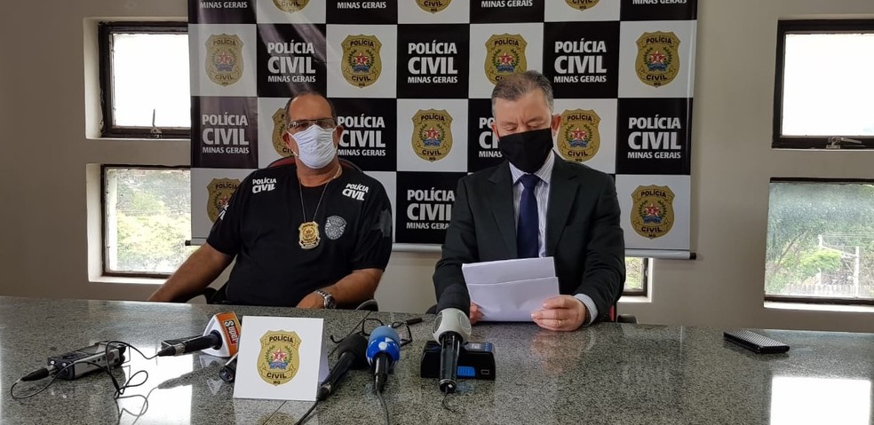 Inspetor chefe da Delegacia Especializada na Investigação e Repressão ao Furto, Roubo e Desvio de Cargas, Marcelo Gonçalves e o chefe da Divisão Operacional do Depatri, Delegado César Matoso — Foto: Flávia Cristini/TV Globo