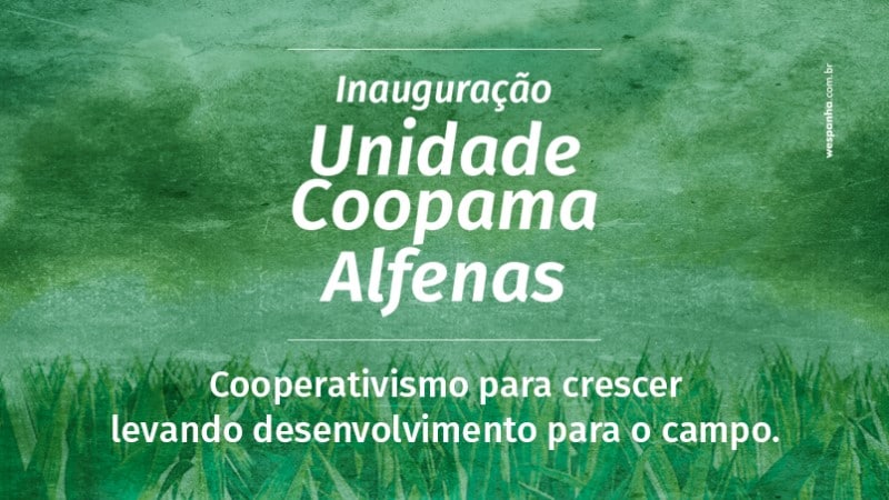 Com o mote “Cooperativismo para crescer levando desenvolvimento para o campo”, a Coopama inaugura a Unidade no dia 10 de agosto, com solenidade a partir das 16h, com a presença de cooperados, colaboradores, diretoria executiva, conselheiros e autoridades locais. A Unidade Coopama Alfenas funcionará na Rua Iput, 667, no bairro residencial Teixeira (a 400 metros do trevo na rodovia Alfenas/Areado).