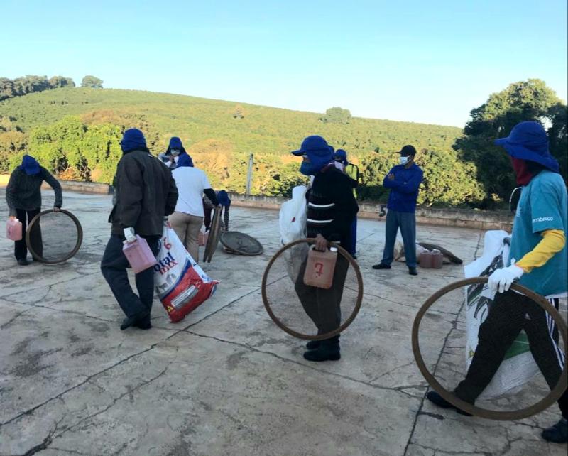 As recomendações vão desde a higiene pessoal e dos materiais utilizados, até normas de transporte das pessoas para as lavouras. Por exemplo, os veículos devem ser desinfetados, antes e depois das viagens, com uma solução de uma parte de água sanitária para dez de água. Nos alojamentos para os trabalhadores que vierem de fora, a distância mínima entre as camas deve ser de dois metros. E, nos refeitórios, talheres e copos devem ser descartáveis. Também há orientações específicas para o trabalho de colheita. Na derriça do café, seja manual ou com derriçadeiras, o ideal é que cada fileira seja colhida pelas mesmas pessoas, mantendo a distância mínima de dois metros entre os trabalhadores