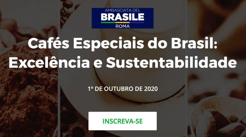 Para celebrar o Dia Internacional do Café, em 1º de outubro, venha participar do webinar “Cafés Especiais do Brasil: Excelência e Sustentabilidade”. O evento é organizado pela Embaixada do Brasil em Roma em colaboração com a Câmara Ítalo-Brasileira de Comércio, Indústria e Agricultura (ITALCAM); o Conselho de Exportadores de Café do Brasil (CECAFÉ); a Associação Brasileira de Cafés Especiais (BSCA) e a Agência Brasileira de Promoção de Exportações e Investimentos (Apex-Brasil).