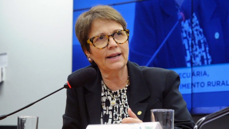 A deputada Tereza Cristina (DEM-MS) será a ministra da Agricultura do governo de Jair Bolsonaro. A informação foi divulgada pela Frente Parlamentar Agropecuária (FPA), da qual a deputada é líder, e depois oficializada pelo presidente eleito em sua conta no Twitter. A bancada ruralista se reuniu nesta quarta-feira (7/11) com Bolsonaro. O nome da parlamentar foi indicado durante o encontro dos congressistas ligados ao agronegócio em Brasília (DF).