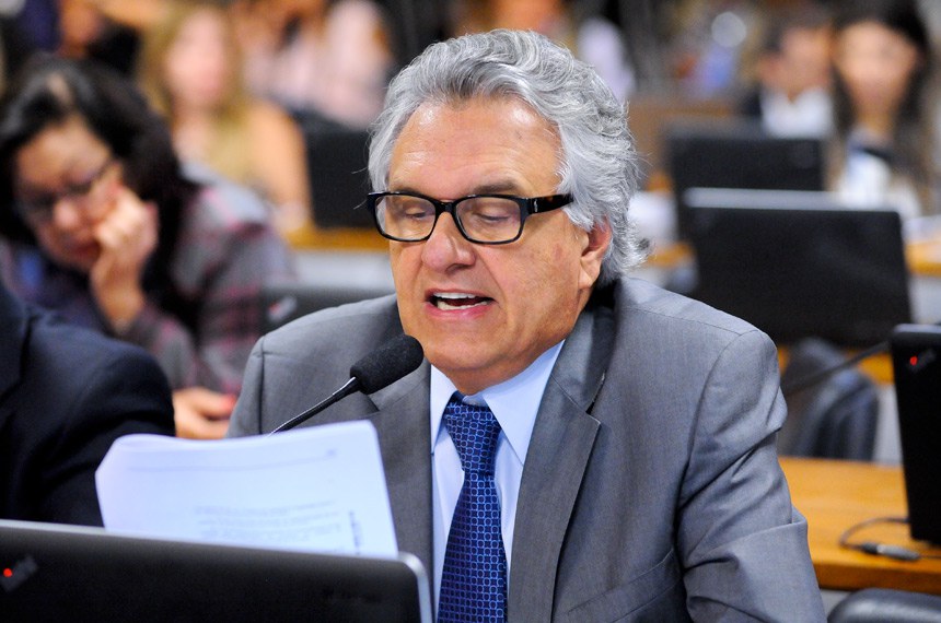 Senador Ronaldo Caiado (DEM-GO), relator substituto do projeto, lê o relatório na reunião da Comissão de Constituição, Justiça e Cidadania (CCJ) do dia 31 de maio deste ano (Foto: Pedro França/Agência Senado)