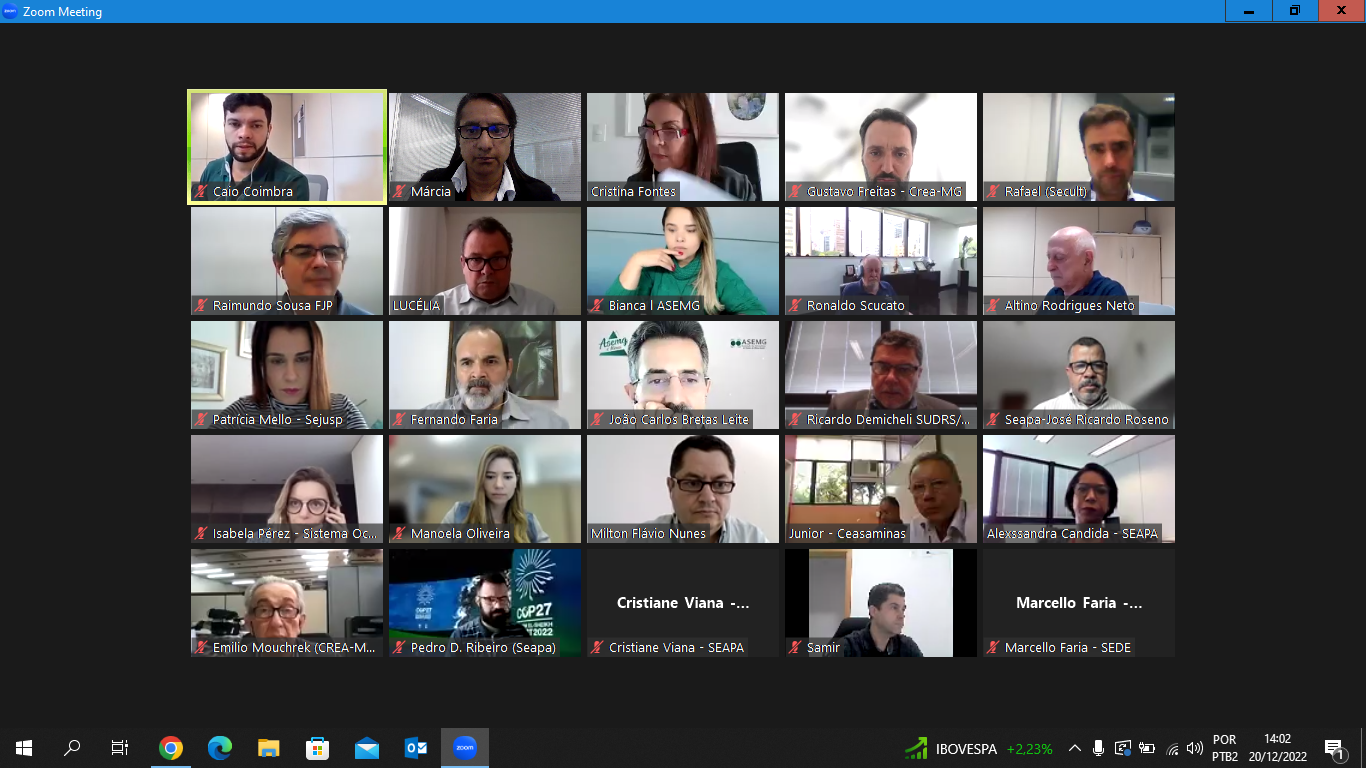 Outro tema abordado foi a participação do Governo de Minas, por meio das secretarias de Agricultura e de Meio Ambiente, na 27ª Conferência das Nações Unidas sobre Mudanças Climáticas (COP 27), sediada em Sharm El-Sheik, no Egito. O Chefe do Núcleo de Gestão Ambiental da Seapa, Pedro D’Angelo, apresentou as principais impressões sobre as negociações ocorridas na COP27, e como elas impactarão o agronegócio mineiro.