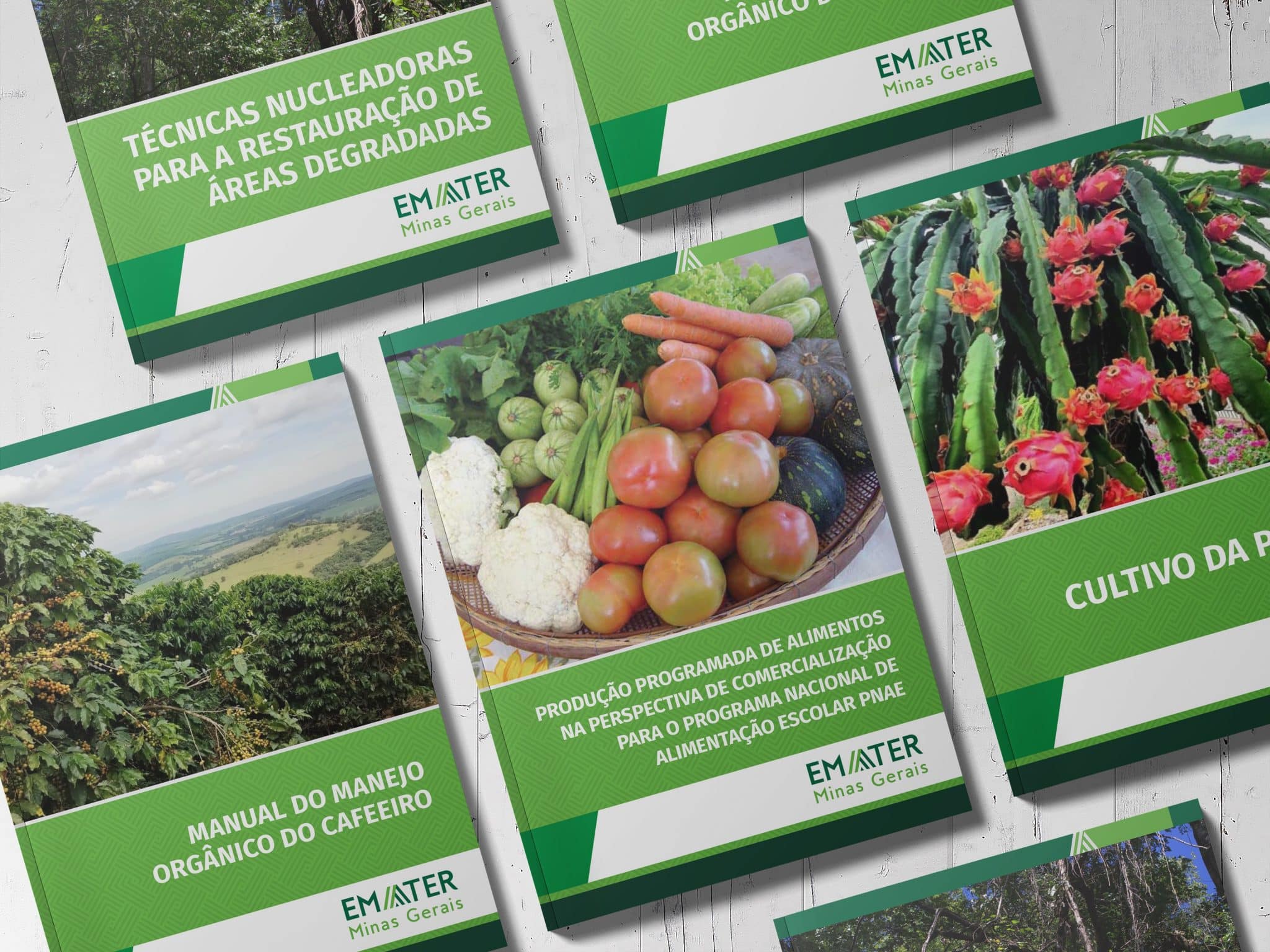 A Empresa de Assistência Técnica e Extensão Rural de Minas Gerais (Emater-MG) publicou quatro novas cartilhas em sua Livraria Virtual. Os temas são: Manual de Manejo Orgânico do Cafeeiro, Técnicas Nucleadoras para Recuperação de Áreas Degradadas, Cultivo da Pitaya e Produção Programada de Alimentos na Perspectiva de Comercialização para o Pnae. Os materiais podem ser acessados gratuitamente ao clicar no banner da Livraria Virtual, no site www.emater.mg.gov.br.