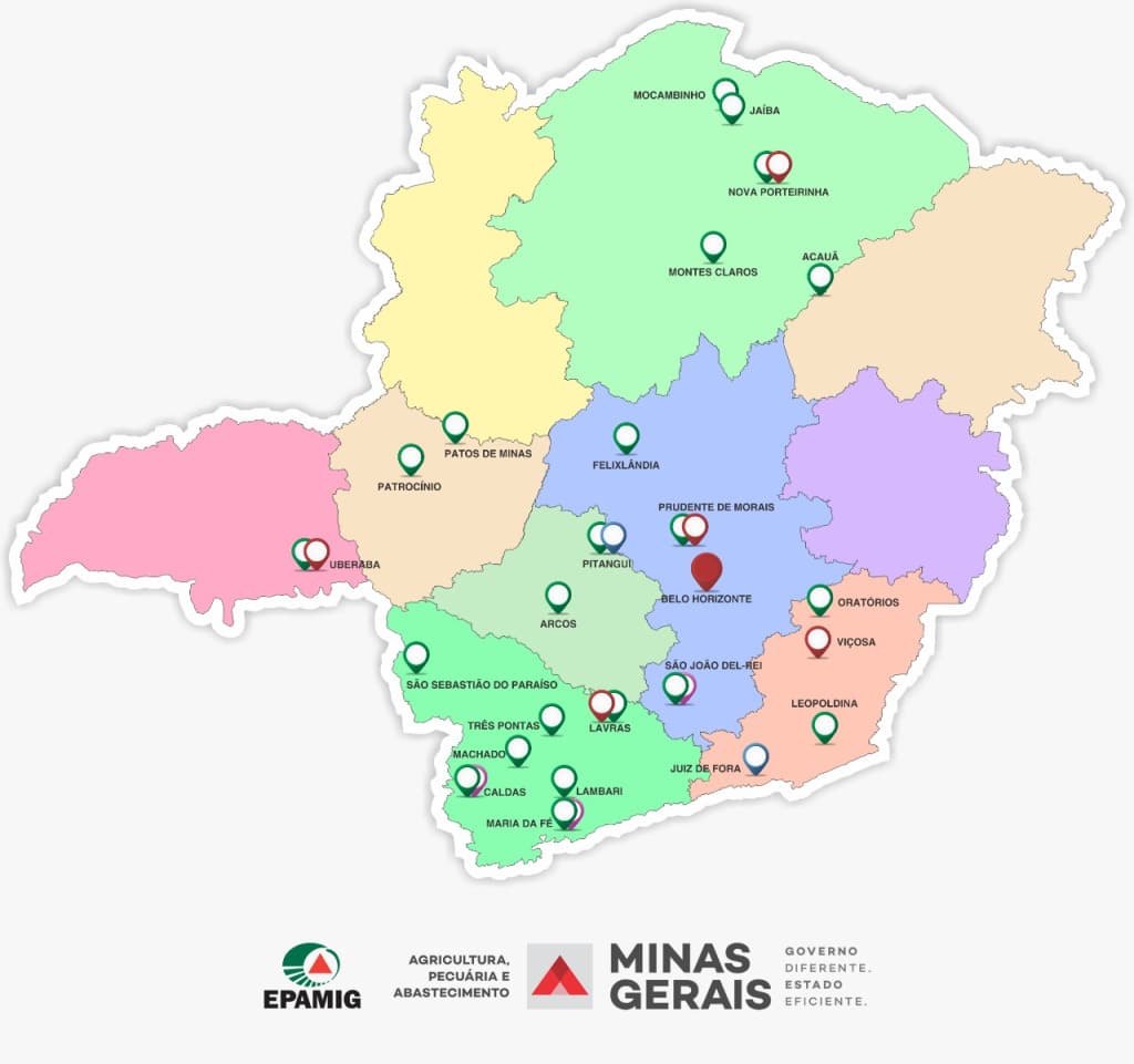 No total, a EPAMIG possui 22 Campos Experimentais localizados em diferentes regiões de Minas Gerais. As fazendas são equipadas com estruturas de pesquisa, produção vegetal e animal e realização de eventos. Também, a empresa possui dois Institutos de Ensino localizados em Juiz de Fora e Pitangui. Em todos esses locais, as atividades serão conduzidas em conjunto com Sindicatos Rurais e entidades cooperadas do Senar Minas.