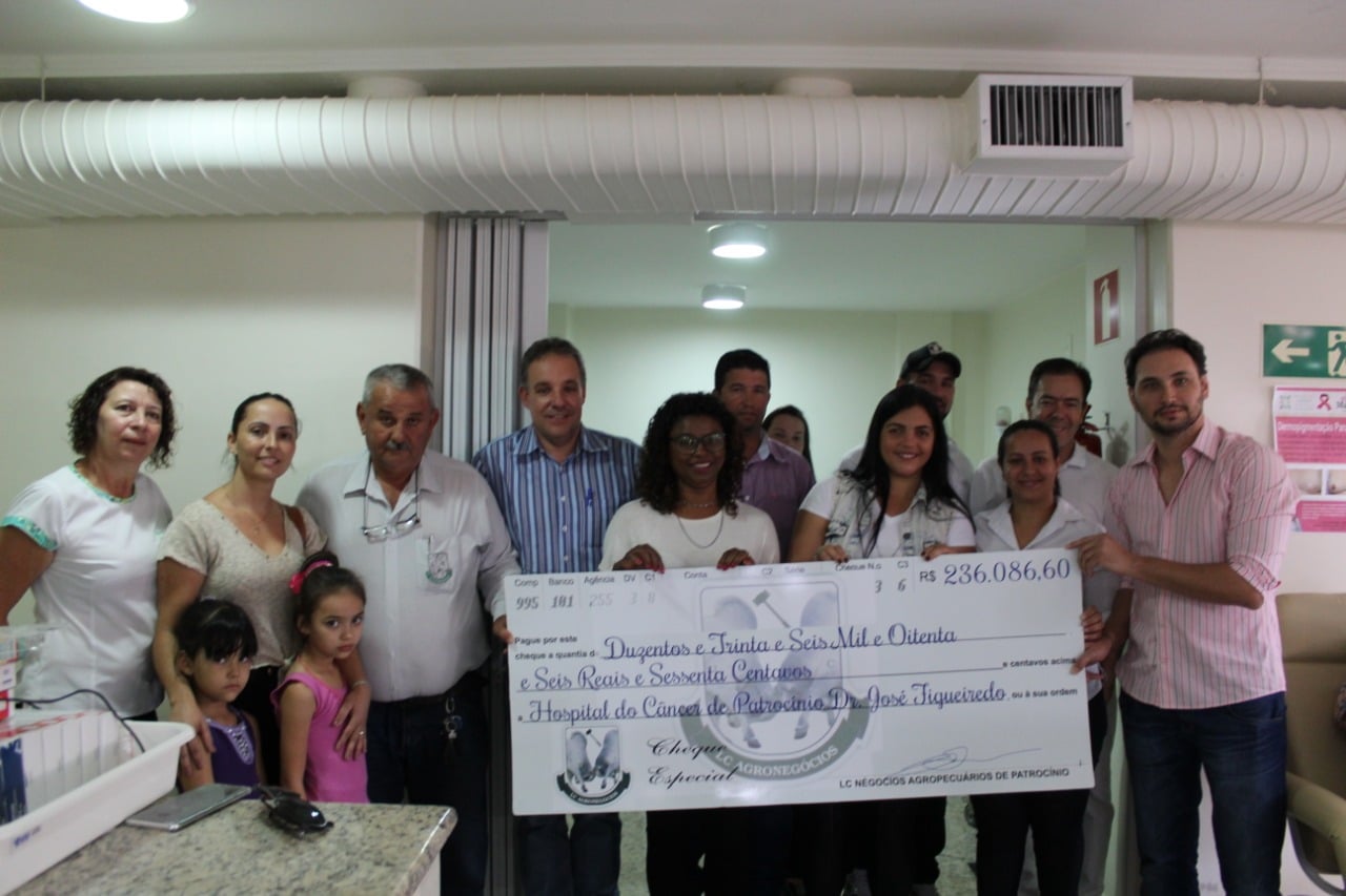 O valor arrecadado é fruto da parceria entre a Expocaccer, os Ranchos Top Team e 8 segundos e a LC Agronegócios, que promoveram o Leilão Solidário em prol do Hospital do Câncer, realizado no dia 05 de outubro.
