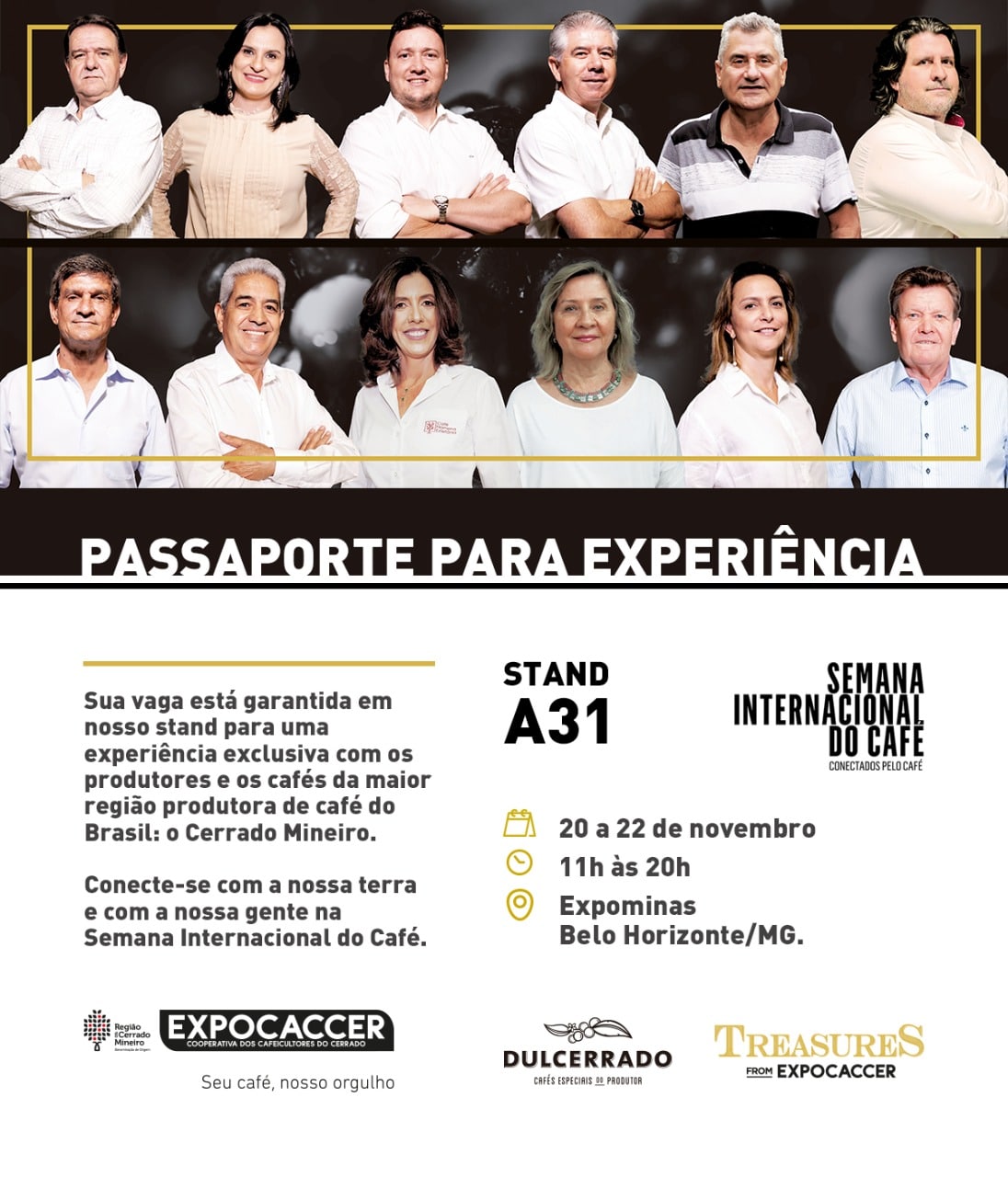 Dentro da rica programação da Semana Internacional do Café que inclui seminários, workshops, encontros, cursos, sessões de cuppings e concursos, a Expocaccer juntamente com a Dulcerrado estarão com estande aberto ao público com showroom de diferentes cafés especiais dos 12 produtores cooperados da Expocaccer, dentre eles os Campeões Expocaccer 2019.