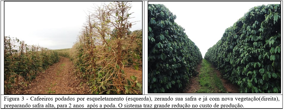 6-Podas e sistema safra zero – A prática de podas em cafezais era muito pouco usada no passado. Atualmente a poda do tipo esqueletamento ou desponte tem tido larga aceitação pelos cafeicultores, com bons resultados, em termos de produtividade adequada, combinada com facilidades e redução de custos