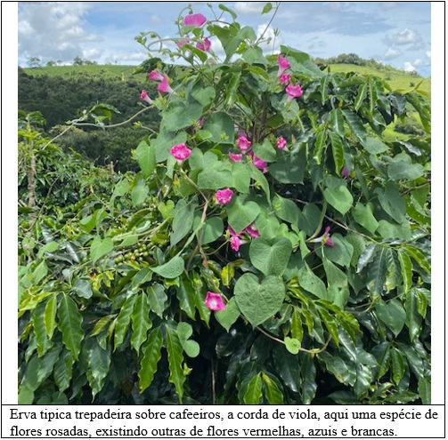 A trapoeraba, erva de hábito rasteiro, pode se tornar uma erva trepadora em lavouras de café, devido ao manejo inadequado no seu controle.