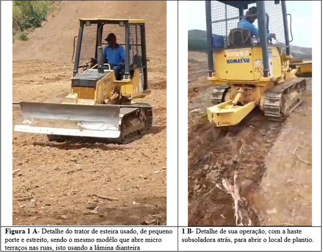 As figuras 1 e 2 mostram o detalhe do trator usado e de sua operação na abertura de local de plantio de café.