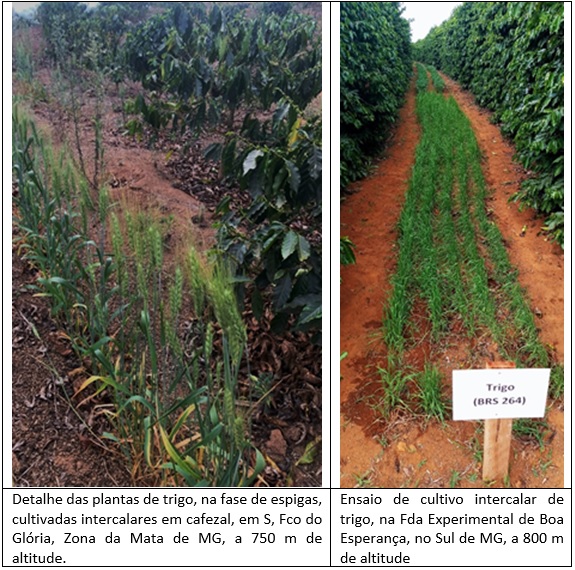 Os resultados obtidos mostram que o cultivo intercalar do trigo em cafezais se mostra viável, indicando ser uma cultura pouco exigente em chuvas. Com regime hídrico mais normal nessas regiões, os resultados de produtividade podem melhorar mais. Verifica-se, ainda, que as condições de temperatura nas regiões cafeeiras do Sul e Zona da Mata de Minas são adequadas, pois as lavouras de arábica são cultivadas em altitudes entre 600 e 1200 m, sendo que as indicações da Embrapa, para o cultivo do trigo, em áreas novas, de cerrado, recomendam cultivo acima de 600 m de altitude. Como a época de cultivo coincide no inverno, a única restrição seria o maior risco em áreas muito sujeitas a geadas, pois a cobertura vegetal torna o ambiente mais frio dentro do cafezal.