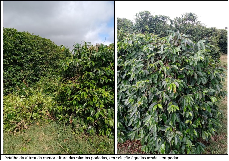 Um trabalho de acompanhamento de lavouras de café podadas por esqueletamento, em comparação com outras não podadas, foi realizado em fazenda do Sul de Minas. Verificou-se que as plantas podadas mostraram uma condição vegetativa/produtiva bem superior, diante de um período de poucas chuvas. (Matiello et ali, In- Anais do 46º CBPC, Fundação Procafé, 2022. p.10.).