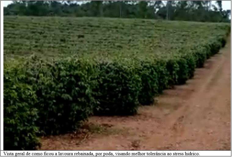 Uma finalidade que tem sido pouco considerada, no uso das podas, é a que prevê a redução da área vegetativa dos cafeeiros, principalmente em altura das plantas, para melhorar o equilíbrio hídrico nas plantas, o que se mostra muito útil em áreas onde o regime de chuvas não é bom, ocorrendo déficits hídricos.