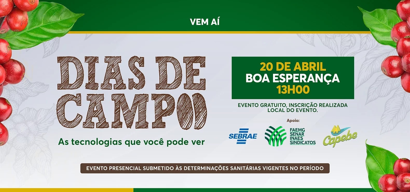 A Fundação Procafé, instituição integrante do Consórcio Pesquisa Café, coordenado pela Embrapa Café, promoverá no próximo dia 20 de abril um Dia de Campo na Fazenda Experimental de Boa Esperança-MG. O evento terá início às 13 horas e reunirá cafeicultores, técnicos, estudantes, pesquisadores e outros interessados na melhoria da cafeicultura.
