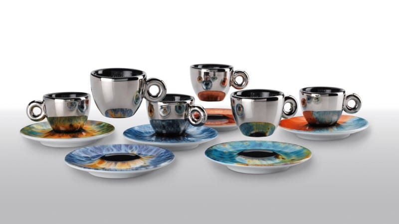 Quinn criou seis variações sobre o tema. Um genuíno jogo de olhares, espelhado na superfície reflexiva da xícara de café. “Com Marc Quinn colocamos nosso café no centro de uma íris colorida, na essência, é uma pupila que observa curiosamente o mundo ao redor”, diz Massimiliano Pogliani, CEO da illycaffè. “Ao mesmo tempo, o símbolo da nossa mistura única, que estimula a mente e o paladar.”