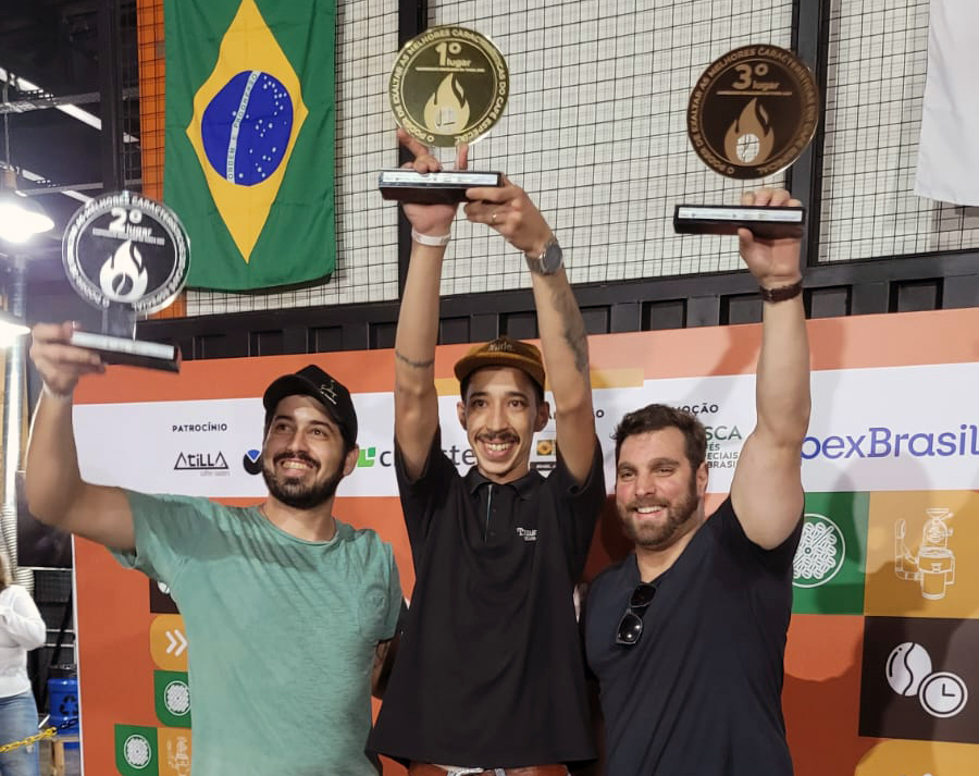 Eduardo H. G. dos Santos (2º lugar), Matheus Narcizo (campeão) e Vinicius de Lima Goulart (3º colocado) (Foto: Divulgação BSCA)Na competição, realizada de 24 a 26 de março por Associação Brasileira de Cafés Especiais (BSCA) e Agência Brasileira de Promoção de Exportações e Investimentos (ApexBrasil), como ação do projeto setorial “Brazil. The Coffee Nation”, em Belo Horizonte (MG), Narcizo foi o profissional que se manteve mais fiel à curva de torra planejada, superou dezenas de competidores e levou o título da disputa, garantindo sua vaga no World Coffee Roasting Championship, mundial da categoria, que será realizado durante o Taiwan International Coffee Show, entre 17 e 20 de novembro, em Taipei (Taiwan).