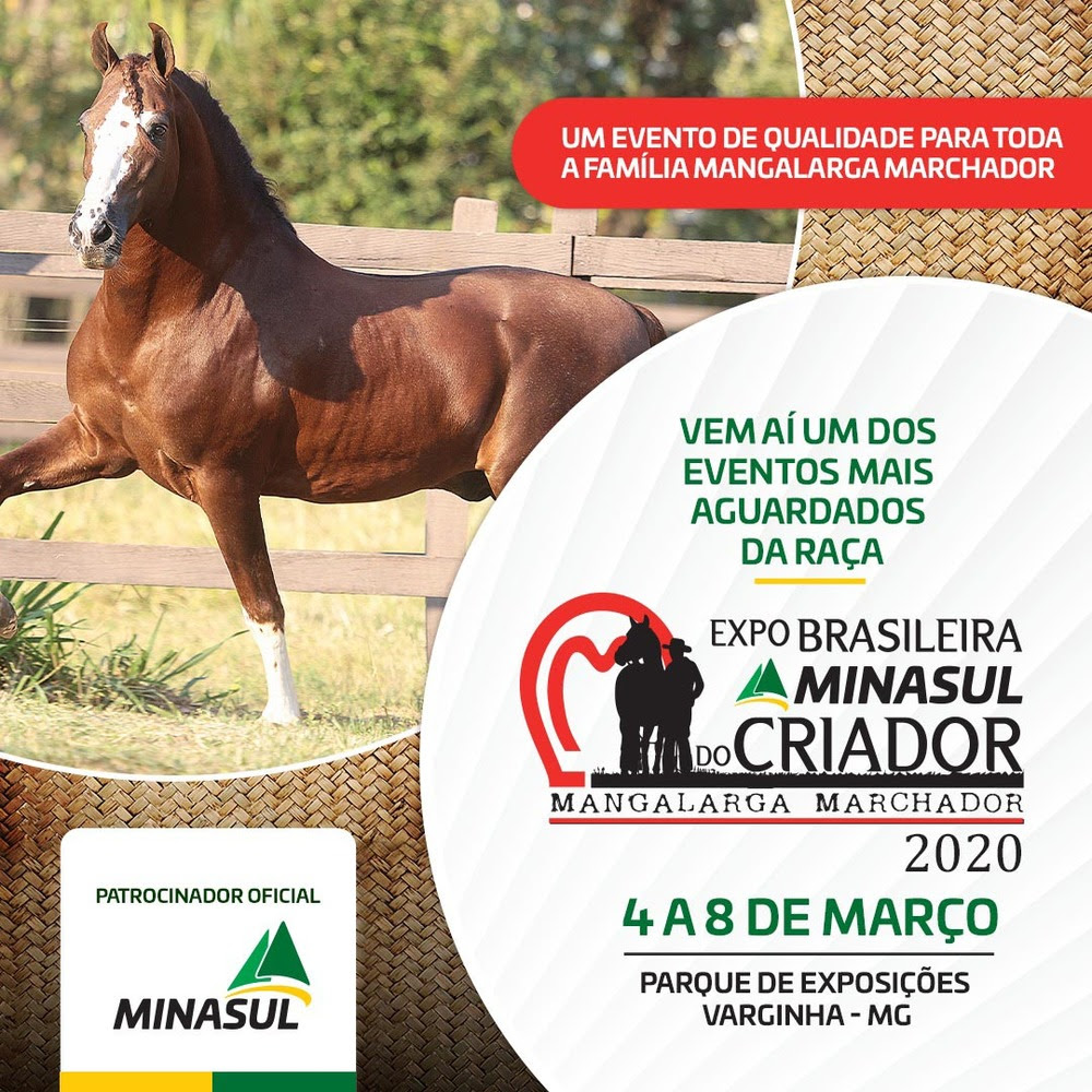 Varginha se prepara para receber a Exposição do Criador, um projeto que tem a Minasul como parceira e que visa atrair para a cidade grandes criadores e negociadores da raça. O megaevento é organizado por empresas de eventos especializadas, com o apoio da Associação Brasileira do Cavalo Mangalarga Marchador (ABCCMM) e será realizado na próxima semana, entre os dias 4 e 8 de março, no Parque de Exposições da cidade.