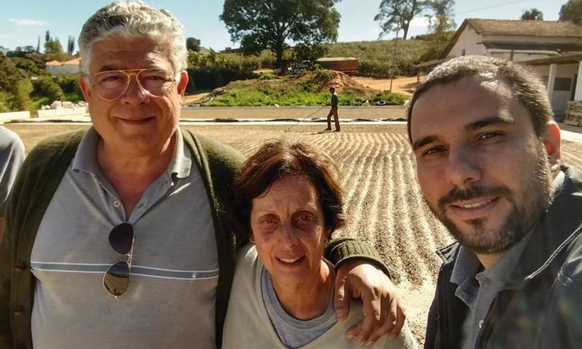 A premiada cafeicultora Simone Morais, que inspira outras mulheres, como o marido, Artur, e o coordenador de sustentabilidade da Atlântica Coffee, Thiago Franco (foto: GMT/Divulgação)