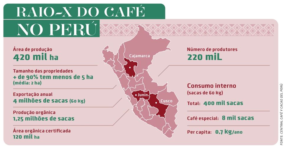 Esse cenário promissor – que despontou em 2008, na esteira do consumo de cafés especiais na Europa e nos Estados Unidos – tem como importante agente catalisador a Central Café y Cacao del Perú. Em 2017, ao promover a primeira edição da Taza da Excelencia – como é chamado no país o Cup of Excellence, prêmio mais importante de cafés de alta qualidade no mundo –, a associação, que reúne nove mil famílias produtoras de café e de cacau organizadas em 11 cooperativas, contribuiu para alavancar as vendas internacionais dos cafés de qualidade peruanos.
