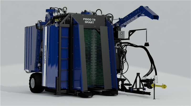 Versátil, a nova Colheitadeira de Café – P1000 TR SMART conta com duas opções de descarga de série, bica e reservatório basculante, com capacidade para 1.200 L. De fácil operação e excelente capacidade de articulação, possui recolhedores rebaixados, que  permitem maior área útil de colheita (maior quantidade de varetas), trabalhando com mais eficiência em lavouras mais novas e reduzindo as perdas de chão em lavouras adultas. Entre seus diferenciais, vale destacar a suspensão de até 1 m em relação ao solo, permitindo a colheita em terrenos inclinados, principalmente em terraços.