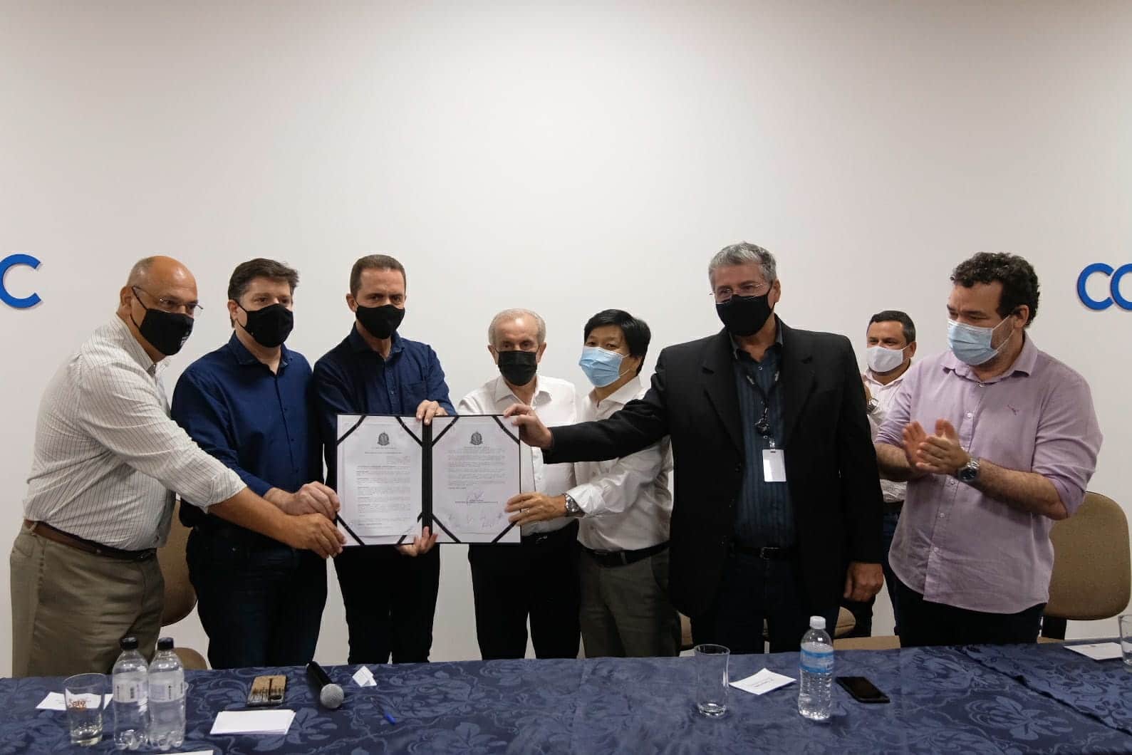 Na sede da Cooperativa de Cafeicultores e Agropecuaristas (Cocapec), em Franca, o Secretário de Agricultura e Abastecimento de SP, Itamar Borges, assinou a nova resolução para a produção de mudas de café, nesta quinta-feira, dia 25, em evento com a presença do deputado federal Baleia Rossi, do prefeito de Franca, Alexandre Ferreira, do presidente da Cocapec, Carlos Yoshiuki Sato, e do secretário-executivo da SAA, Francisco Matturro.