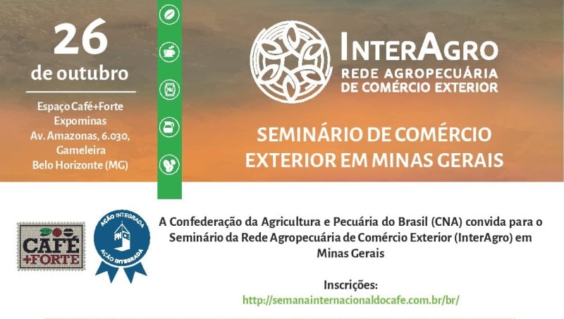 Entre os eventos programados está o “Seminário INTERAGRO CAFÉ – Seminário de Comércio Exterior em Minas Gerais”, em 26 de outubro, a partir das 13h30, no Expominas. As palestras abordarão oportunidades de exportação e novos mercados para a cafeicultura, como a experiência de remessas para China.