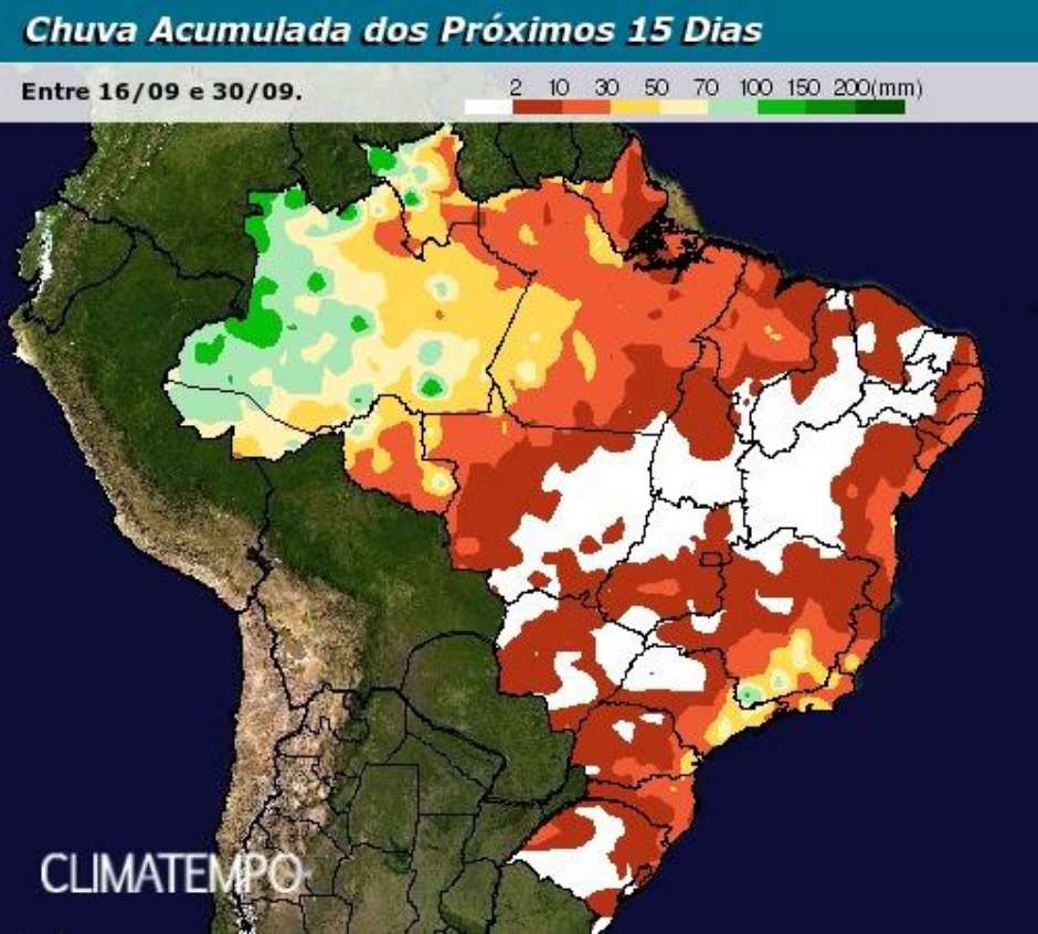 A chuva, principalmente no Mato Grosso, poderá estimular os produtores de soja a iniciar o plantio, porém como serão chuvas pontuais e não há nenhum indicativo de que nos próximos 10 dias possam cair na mesma área, o risco para o plantio é enorme, apesar de que muitos produtores já contabilizam mais de 150mm de chuvas em suas áreas, por conta das chuvas registradas em agosto. Na próxima semana as chances de que venham ocorrer novas pancadas de chuvas sobre toda a faixa central do Brasil é maior, mas novamente serão chuvas irregulares informa o agrometeorologista.